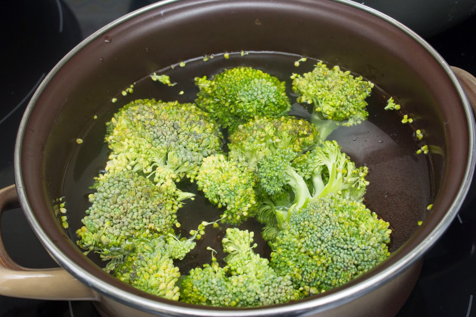 En primer lugar pon agua con un poco de aceite y sal al fuego alto. Luego corta el brócoli en ramitas y lo echas. Deja que se vaya cociendo.