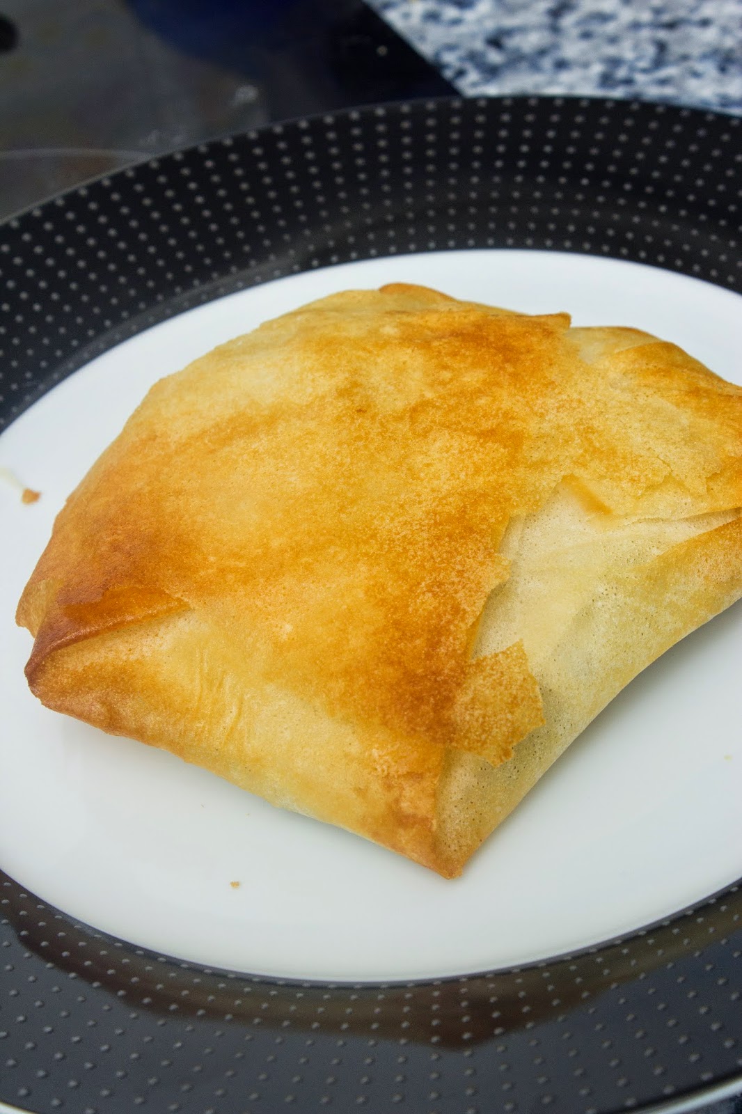 Luego bate un huevo y moja el paquetito para que no se abra, sobre todo los bordes, hasta que veas que no se levantan.
