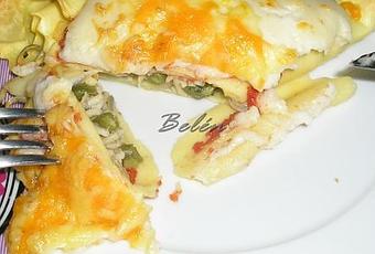 Esta receta parte de la idea que me dio una receta que le vi a Ana (La cocinera de Betulo). Ahora mismo según estoy redactando esto no se muy bien como ella la llamaba, pero si que eran una especie de raviolis o paquetitos hecho con placas de lasaña y un relleno. Yo el relleno lo tunee a mi manera, como siempre y para no variar, para hacer mas mía la receta...... jajaja En cuanto a los paquetitos me costo conseguir hacerlos todo por en ese momento acelerarme y no pararme a buscar la receta de Ana. Pero aun así pienso que salieron bastante bien. Como vos digo la receta puede tener un montón de variantes, porque montones de variantes pueden ser sus rellenos. Incluso en lo que se refiere al gratinado con o sin besamel.