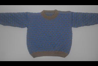 Hoy no os traigo algo hecho por mí, hoy os traigo un jersey que, la araña madre, mi madre, ha hecho para el nieto de una amiga, para Adrián.
