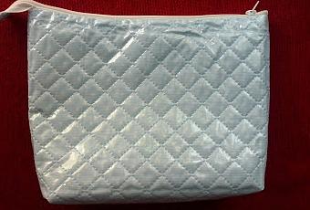 Retalito de tela plastificado para el exterior, que ya viene acolchada, un trocito de tela para el forro y una cremallera... y listo, no necesitas nada más.