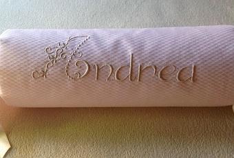 Ambos en pique rosa con el bordado en camel. Perfectamente combinados con su habitación y sus colchitas de cuna.