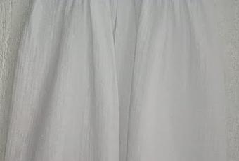 Esta foto está hecha sobre mi mesa de la plancha, nada preparado, ni bien puesto, pero es la primera que le envié a la mamá cuando terminé el camisón. En esta foto se aprecia muy bien el cuerpo del camisón, por eso os la pongo, aunque no sea la mejor. La falda se la puse de bambula con mota, una tela preciosa que está muy de moda y que no da calor.