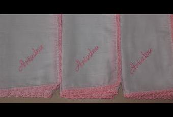 ... y rosas bordadas y con croché gris. Esta combinación es una que yo tampoco habría elegido, pero para gustos... los colores.
