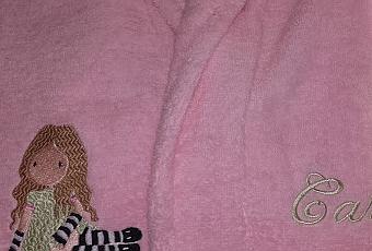 Lo primero que le hice fue este bonito albornoz... una muñeca Gorjuss que le encantan y su nombre bordado al otro lado.