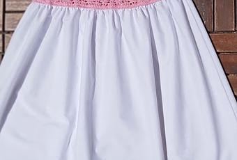 Éste, en rosa, para Carla, a ella le encanta el rosa. Cuerpo de croché rosa y falta de batista blanca, lacitos en tirantes.