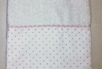 Hola chicas, buenos días. Hoy os traigo una nueva toalla, para una nueva bebé, para Carmen. Clásica, sencillita y muy fina. Toalla blanca, tela blanca con topitos rosa, piquillos y bordados en el mismo tono. Y me voy rapidito... tengo muuucho que hacer. Buen San Viernes y buen fin de semana.