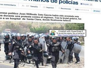 Para mejor difamar a Cuba en el caso del "disidente" cubano Soto García, "muerto tras una golpiza" según la más reciente campaña anticubana de desinformación, el portal derechista argentino INFOBAE.COM ha usado fotos de la policía asesina del régimen hondureño en una operación de represión contra trabajadores