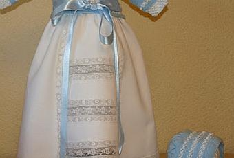 Esta entrada es para enseñaros cómo ha quedado el cojunto para Guillermo. Su mamá tardó en decidirse entre faldón de cintura o con cuerpo, y al final, optó por la segunda opción. Yo creo que ha sido un acierto. El faldón lleva tiras bordadas intercaladas con tiras de valenciennes, terminado en una tira de ondas y el cuerpo de punto de lana de bebé azul y perlé blanco. Lleva un lazo de raso en la cintura haciendo el efecto de un faldón de cintura, pero con la comodidad de un faldón de cuerpo entero.