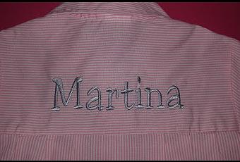El nombre, grandecito en gris, a la espalda del babi...