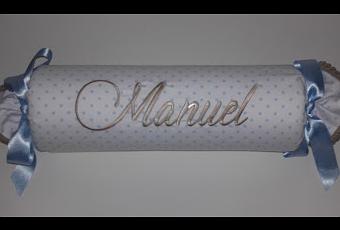 Os traigo un caramelito antivuelco, pero diferente a los demás. Éste, en lugar de con piqué liso, está hecho con piqué de lunares. También quedó muy bonito.