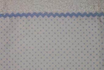 Hola chicas, buenos días. Hace unos meses, antes de Navidades os enseñé esta toalla para un bebé que acababa de nacer, Nicolás. A sus papás les gustó mucho, cosa que me alegra, tanto que me encargaron dos para los hermanos mayores de Nicolás. A la hora de buscar las telas tuvimos muchas dudas, aunque al final nos decidimos por hacerlas en el mismo color que la de Nicolás, y con la misma letra. Para el mediano, Mario, de lunares. PARA MARIO Y ALBERTO