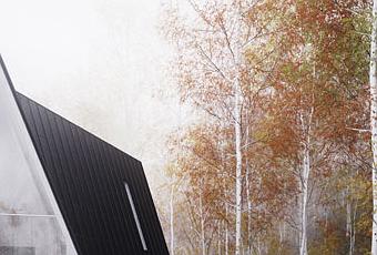 Escondida en el bosque , en Utah , USA , con un diseño sorprendente , nos encontramos esta cabaña . El techo plano se prolonga hasta el suelo .Por dentro pulcritud , muebles hechos a medida y blanco con toques de madera.