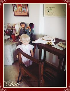 Hace unos días, mi suegro Francisco y mi queridísima Menchi, sabiendo de mis gustos y apego al pasado, me invitaron a pasar un día en un pueblecito de Salamanca, muy cerquita de Alba de Tormes; el motivo de esa escapadita?, visitar a Puri, una enfermera jubilada que dedica su tiempo y energías a rescatar juguetes que han sobrevivido al paso de los años, unos con mejor trato que otros, pero estos últimos con la suerte de caer en sus manos que, con mimo y esmero, los deja listos para lucir ante nuestros ojos. Y efectivamente!! como dice el cartel, desde que entras hasta que sales, no pierdes la sonrisa, cada paso que das, cada juguete que ves, se escapa un: "¡¡anda, eso lo tenía yo!!, " esto lo teníamos en casa" " como me lo pasaba con tal.."o " mi madre me contaba que.." porque algunos tienen más vida que yo, como los pizarrines que usaba mi madre en el cole. En fin, que es un mundo de sueños que me transportó a mi infancia y me hizo recordar lo feliz que fue. Aquí os dejo una pequeña muestra de lo que pude ver en casa de Puri, de la cual tengo que decir que nada mas llegar nos sentimos como si la conociésemos de toda la vida, fue un día muy agradable el que pasamos allí, y desde aquí aprovecho a darle las gracias de nuevo