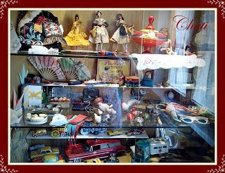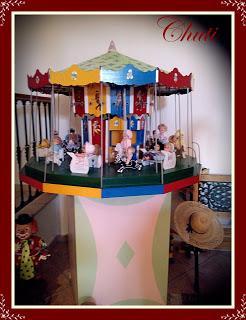También hay carrusel, además de noria, barcas... todos ocupados por nuestros queridos barriguitas, y en las vitrinas, cantidad de objetos que todos hemos tenido, peonzas, canicas, las tabas, la famosa bailarina que nuestras madres ponían encima de la tele...etc, etc