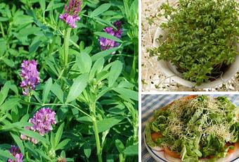 Para que sirve la alfalfa:• Problemas cardiovasculares: Para esta enfermedad la alfalfa desarrolla un papel vital porque esta hierba regula el colesterol que tenemos acumulado en nuestro cuerpo y así se evita que la sangre permanezca en las paredes arteriales.• Drogas y alcohol: La alfalfa se utiliza para combatir la adicción alcalinizante y los desintoxica.• Cáncer: La alfalfa sirve para ayudar a los agentes carcinógenos ya que se unen en el colon y aceleran su eliminación.• Diabetes: La alfalfa tiene como ingrediente el manganeso y eso ayuda a botar más rápido el azúcar de la sangre es por eso que ese le recomiendan a los diabéticos. A aquellos que no toleran la insulina se les recomienda la alfalfa.• Edemas: Existe un componente en la alfalfa que ayuda al lavado eficaz de agua de cuerpo; es decir, lo ayuda a combatir los edemas, que es el exceso de agua en el cuerpo.• Menopausia: La alfalfa tiene componentes que son parecidos al estrógeno que es la hormona femenina es por eso que se dice que es muy útil en la menopausia.• Asma y afecciones respiratorias: se indica que la semilla de la alfalfa se utiliza para combatir estas enfermedades.• Anemia: Reduce el grado de insuficiencia sanguínea y ayuda a combatir la anemia.Además se sabe que la alfalfa protege los dientes y los mantiene sanos.Ir a: Frutas y Verduras