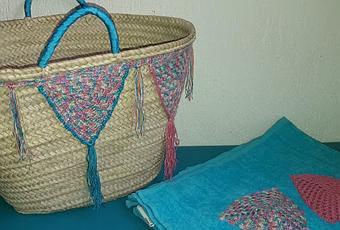 Decoré tanto el capazo como la toalla con unos banderines a croché en un precioso hilo multicolor que me dio la posibilidad de usar muchos hilos de muchos colores y todos venían bien.