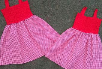 Para unas mellizas, unos vestidos con cuerpo de croché y falda de vichy, el vichy es un estampado que me encanta y creo que nunca pasa de moda.