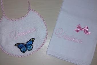 En el babero me pidieron una mariposa, porque a la mamá de Verónica le encantan las mariposas...