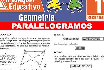 Aquí hallaras GRATUITAMENTE el siguiente material sobre Paralelogramos preparado especialmente para los estudiantes de Primero de Secundaria. Este contenido se desarrolla en el curso de GEOMETRÍA y te lo compartiremos GRATIS en formato PDF.