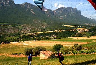En un momento de la mañana una de las integrantes del equipo de prensa de Picurt se puso a invocar a los vientos del sur, justo los que necesitábamos para poder volar. Bromas aparte, las corrientas térmicas empezaron a cambiar con lo que finalmente pudimos subir a La Montaña Mágica, en Organyà. A esta zona de los Pirineos acuden muchos aficionados y profesionales del parapente porque además de las espectaculares vistas se dan las circunstancias perfectas para subir y bajar durante horas sin necesidad de aterrizar.