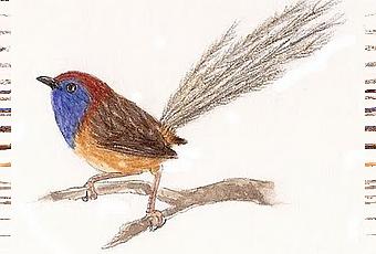 Hasta ahora todavía no he practicado en este blog uno de los pasatiempos favoritos de los naturalistas: buscar casos de convergencia evolutiva, en concreto especies de regiones lejanas que sean similares a alguna especie local, similitud debida a que la evolución ha perfilado a ambas especies del mismo modo, adaptándolas a vivir representando el mismo papel en su comunidad, el mismo nicho ecológico. Bien, nuestros montes son mediterráneos, y el clima mediterráneo, con su vegetación característica, existe también en California, Chile, Sudáfrica y Australia. Dejándonos llevar por el atractivo de lo más lejano, fijémonos en Australia, en los matorrales mediterráneos de su fachada meridional, esa vegetación llamada mallee que encuentra al Sur los confines del océano que bate las costas de la Antártida. Matorrales con plantas de hojas duras, perennes, eucaliptos y melaleucas, arbustos completamente distintos en su linaje al de nuestras carrascas y coscojas, dan cobijo a pájaros que son como primos lejanos de nuestras aves, especies separadas por millones de años de evolución y sin embargo sorprendentemente parecidas, pruebas vivientes de que la evolución produce las mismas soluciones para entornos de idénticas condiciones, aunque estén separados por casi 20.000 kilómetros.El dibujo representa uno de los pequeños pajarillos del matorral mediterráneo australiano, el llamado mallee emu-wren, o "chochín-emú del mallee" (Stipiturus mallee; pariente de los espectaculares fairy-wren o "chochines-hada"). Un ave diminuta, insectívora, que trajina sin cesar entre las ramas bajas, de pecho vistoso y larguísima y peculiar cola, con 6 plumas desflecadas similares a las del emú, de lo cual viene su nombre. Ahora volvamos a nuestro ecosistema y contemplemos una curruca rabilarga (Sylvia undata). Su tamaño es minúsculo, su pecho no es azul pero sí rojizo, vinoso, llamativo a fin de cuentas comparado con el resto de su librea, y su cola desproporcionadamente larga incluso parece desequilibrarla en sus vuelos de rama en rama en busca de insectos. ¿Cómo explicar todas estas semejanzas? No cabe proponer que se deban al parentesco: nuestra curruca pertenece a la familia Sílvidos, mientras que el emu-wren es un Malúrido, una familia austral muy distinta y desconocida en nuestro hemisferio terrestre. La única respuesta al parecido es la evolución convergente: la selección natural modela a las especies como arcilla hasta esculpir seres similares para ecosistemas similares. En los matorrales mediterráneos se diría que hay un puesto disponible para un pájaro que sea insectívoro, que se mueva por el ramaje, minúsculo, de cola larga y pecho vistoso. Y ya sea en los montes ibéricos o en las antípodas, la evolución parece ser más predecible de lo que podríamos imaginar.