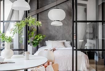¿Qué es lo que más os gusta? ¿Qué os parece esa pared de cristal tan alta, además corredera? un apartamento pequeño pero muy chic, ¿no? ¡feliz jueves!