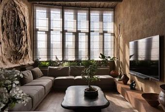 Con inspiración en los materiales y en el estilo japones, en esta vivienda se perciben elementos que evocan a la naturaleza como el agua, la tierra, el fuego y el aire. Representados en su mayoría por las obras de arte, y la conceptualización del espacio que hace que se disfrute la casa como la representación espacial del aire.