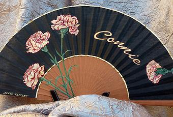 Abanicos en madera de peral pulido, país de algodón pintado a mano