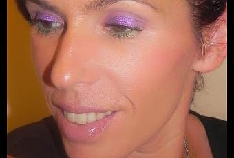 Comencé creando una base para fijar bien el color. El tono que veis en el párpado superior es el intensísimo "Ultraviolet" de una sombra mono de Stars Make Up Heaven, pero aún así está resaltado con la aplicación previa de la sombra en crema de Deborah Watery Mousse 04. Fue una EL del verano pasado, pero si os la encontráis aún...necesitáis esta sombra.