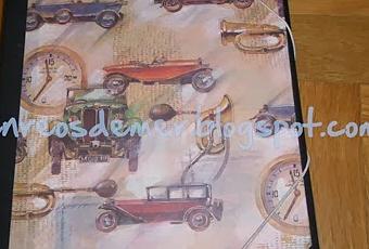 Os muestro otra de mis carpetas recicladas a partir de carpetas de fichas colegiales. Creo que ya tengo una buena colección.En este caso, después de añadir unas solapas a la carpeta original con la técnica del cartonaje, la he decorado con un papel de coches antiguos, que le puede dar un toque más masculino aunque no necesariamente.