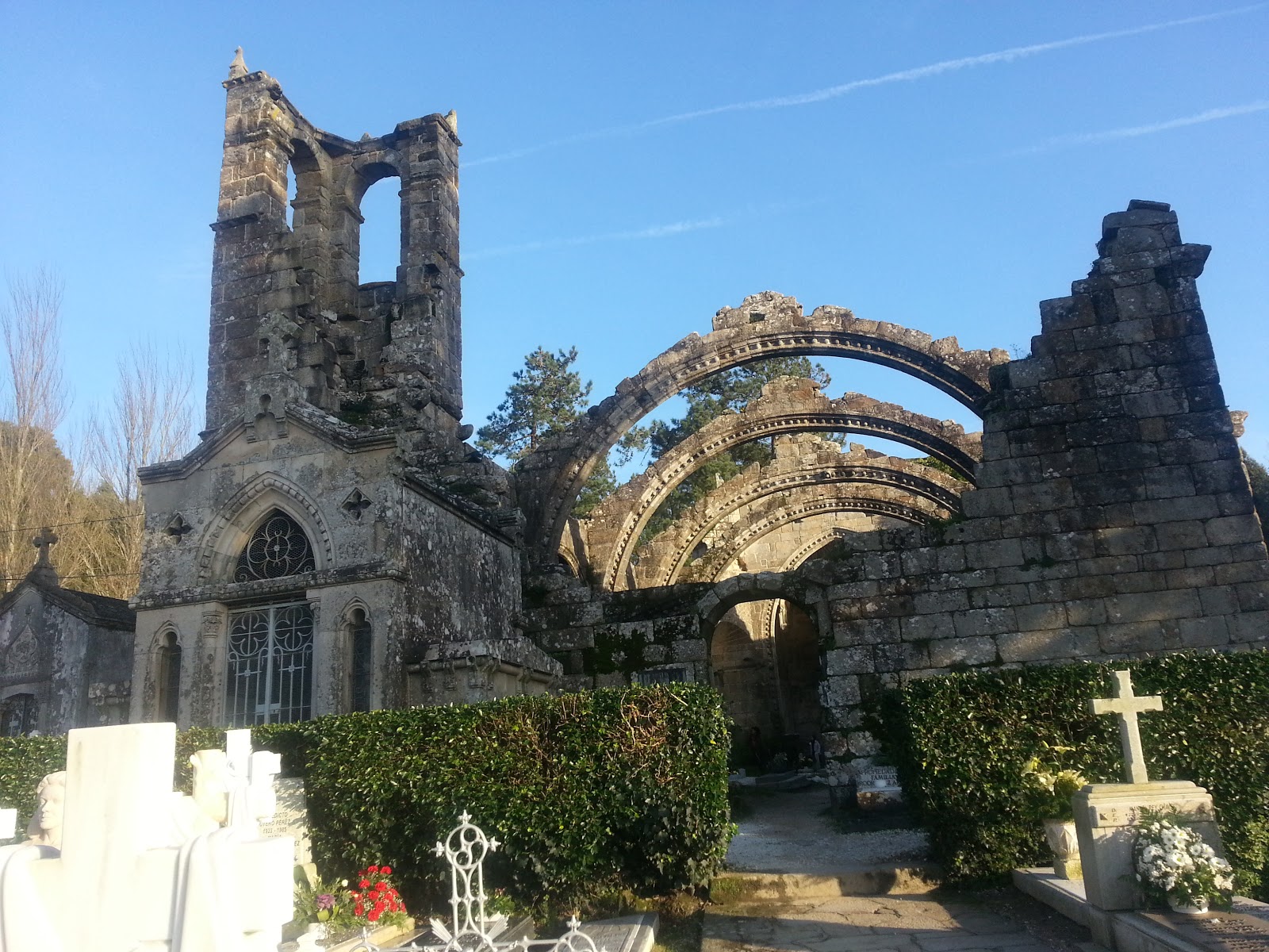 Pero además, el Monsterio alberga una especie de museo donde puedes ver de todo, desde cuadros antiguos, pasado por ropas típicas de monjes, las planchas utilizadas para hacer xilografías (esto último me encantó) y otra cosa que me gustó mucho, la antigua botica del monasterio con sus frascos, cremas y pomadas originales. Lo que os digo, os transportáis a otra época por unos momentos. La entrada costó 2'5 euros, realmente barata para lo que el lugar albergaba.¡Ah! probad el pulpo, se deshace en la boca. Nadie puede decir que ha comido un buen pulpo si no ha sido en Galicia, ¡exquisito! y no olvidéis también dedicarle unos minutos a tomar una copilla de vino albariño, buenísimo. Por último y ya acabo, visitamos la zona de Rias Baixas, en concreto estuvimos en O’Grove, la isla de La Toja con su iglesia llena de conchas (que bonita), Sanxenxo y Cambados. Destaco en especial Cambados y su iglesia Santa Mariña, que es mágica, es una iglesia medio derruida que alberga un cementerio en su interior. Estuve muchísimo rato leyendo lápidas, soy un poco extraña y me encantan los cementerios, no por nada morboso sino porque leo las lápidas y no puedo dejar de imaginarme que ahí hay personas con una historia detrás, personas que han estado aquí y que han sido importantes para alguien, cosas de la imaginación supongo. No me digais que la iglesia no es digna de la mejor novela histórica o de misteiroBueno, ya os dejo que me he extendido demasiado y eso que he resumido mucho. Os aconsejo a todos escaparos a las zonas de las que os he hablado, eso sí, si puede ser en primavera o verano mejor porque hizo un fríoooo, en Salamanca entre 0 y 4 grados y en Santiago unos 11 o así, aunque con la humedad y la lluvia parecía más. ¡Besos!L.I.M.