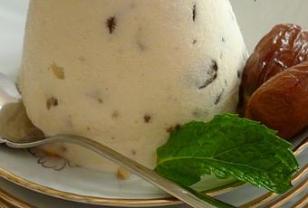 INGREDIENTES2 huevos L, 250 gr de nata montada, 60 gr de azúcar, 2 cucharadas de miel, 100 gr de dátiles y 50 gr de nueces.PREPARACIÓNPicar los dátiles y las nueces, reservar.Montar los huevos con el azúcar y la miel hasta que dupliquen su volumen y estén blanquecinos, añadimos la nata con movimientos envolventes. Vertemos en la heladora. Cuando el helado esté hecho le añadimos los dátiles y las nueces, mezclamos. Colocamos en los moldes individuales y llevamos al congelador.Si se hace sin máquina, se lleva al congelador y cada media hora revolvemos haciendo esto tres veces, donde en última añadimos los dátiles y las nueces, mezclamos. Colocamos en los moldes individuales y llevamos al congelador.Desmoldamos y servimos.