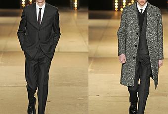 Hedi Slimane siguió golpeando con esa misma garra en la noche del domingo, enviando otro paquete de rockeros larguiruchos veces ahogándose en sus americanas de lana con toques y los brillantes trajes verdes, sus piernas como palillos envueltas en denim negro o de cuero. Los modelos a mi humilde entender rozaban la anorexia.