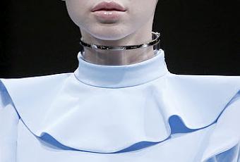 Riccardo Tisci propone en su colección colores suaves como el azul bebé, blanco y nude, en contrapunto con el siempre elegante negro. Los volantes y ondas pronuncian el toque refinado de las prendas, que en algunas ocasiones tienen aires "monjiles" ( los cuellos rígidos nos recuerdan a los alzacuellos eclesiásticos ).. En resumen, una elegancia que aunque intente ser sutil, no pasa desapercibida.