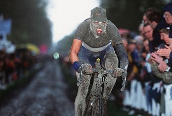 Una de las 5 grandes clásicas y posiblemente la más dura del ciclismo en ruta. La Paris-Roubaix es especialmente conocida por 2 motivos más allá de su longitud. Debido a las fechas en las que se disputa la prueba (entrada de primavera) y a la zona en la que está la ruta hace que la lluvia siempre sea una gran protagonista formando en la carretera en diversos tramos que se convierten en un auténtico barrizal lo que nos deja imágenes para el recuerdo, como la que en esta entrada se muestra. La otra gran característica de la prueba es que tiene muchos tramos (más que ninguna otra clásica) de terrerno adoquinado, lo que hace a la Paris-Roubaix una carrera especialmente dura que curiosamente ningún ciclista español ha sido capaz de ganarla.