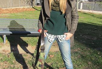 Acompaño mi jersey de lana oversize,a la altura de la cadera con jeans pitillo y camisa tradicional de cuadros .