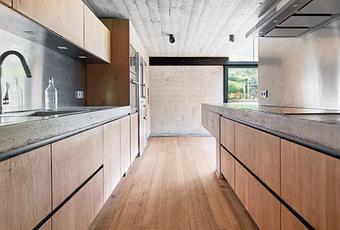 Y es que en muchas ocasiones la madera es la única materia prima capaz de vincular un espacio con su entorno. Por ejemplo, en la casa rural Landaburu Borda, los productos PARKLEX PRODEMA tienen un gran protagonismo en diversas intervenciones del interior por su calidad material, su fácil instalación y la resistencia a la humedad y al uso intensivo. El roble natural que se ha elegido para el acabado de estos productos cubre paramentos verticales y horizontales, suelos y techos, configura el mobiliario de la cocina y transforma la ducha en una experiencia única, consiguiendo, además, que el interior derroche coherencia estilística.