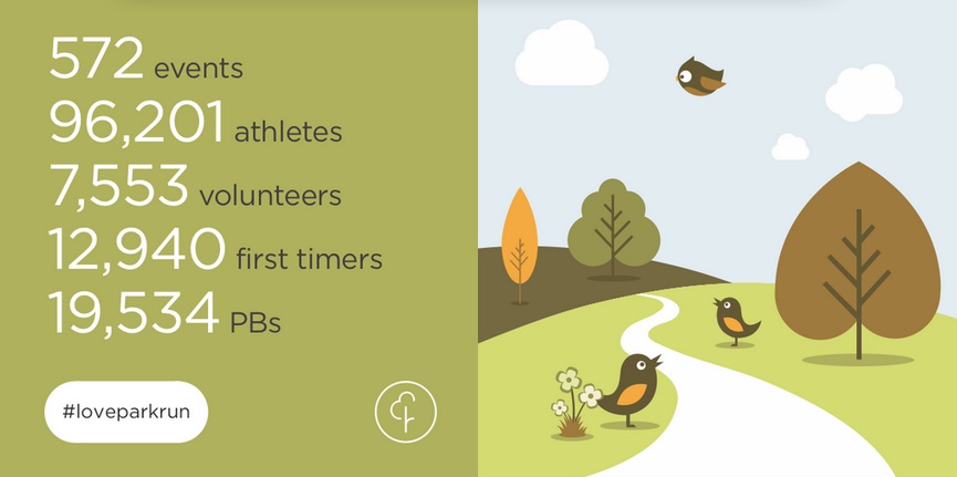 Solo en Reino Unido se celebran semanalmente más de 200 Parkruns abiertos a todo el público, sin coste de inscripción, premios ni medallas; el que llega antes a meta no es el ganador, sino el primer finisher.