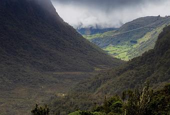 Por la mañana decidimos subir por el camino que conecta hasta la guardianía del Ministerio de Ambiente, desde donde sale un sendero que recorre las famosas lagunas de Oyacachi, entre los 3.500 y 4.300 sobre el nivel del mar, en un páramo declarado sitio RAMSAR con el nombre de "Complejo de Humedales Ñucanchi Turupamba". Aunque no hicimos el camino entero, paseamos unas 3 horas y vimos las lagunas Loreto, Mogotes y Parcachocha, si no he averiguado mal... Un bonito paseo por el páramo en el que tuvimos la suerte de que no lloviese. Pudimos ver el antisana despejado y un bonito lobo de páramo vino a visitarnos curioso.