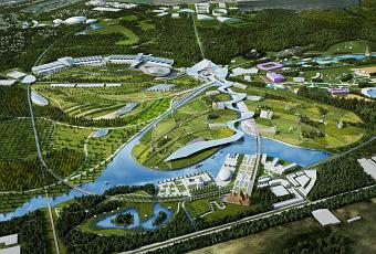 Compañero Gillespies Jim Diggle dice que el “Parque de Rusia abarca el diseño sostenible innovador, con la práctica los principios verdes mejores consagrados en el plan maestro y de los principales componentes de diseño constituyentes, ya sean edificios, paisaje e infraestructura de apoyo”.