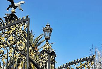 Una vez atravesado el pórtico de estilo francés - y que remite indefectiblemente a ciertos rincones parisinos e incluso londinenses - lo primero que se ve son dos caballos creados por el arquitecto y escultor Guillermo Coustou, los cuales se pensaron para ser puestos en los jardines de Marly, en la ciudad luz pero ante la magnitud de la obra del parque se decidieron a que ocupara un sitio de privilegio en la entrada principal y oficiar de anfitrión en la ancha avenida repleta de árboles que atraviesa el predio.
