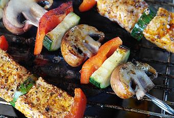 4 brochetas de pollo con verduras