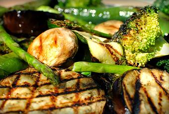 Enciende la plancha o parrilla, con una brocha de cocina echa un poco de aceite de oliva por toda la superficie y pones todos los vegetales a asar, déjalos por al menos 12 minutos, dando la vuelta a los 6 minutos de cocción.