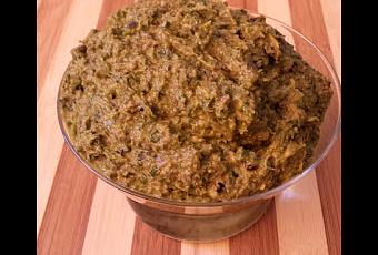 - 100 gr de perejil fresco- 4 dientes de ajo- 150 gr de aceitunas negras sin hueso- 55 gr de alcaparras- Ralladura de un limón / jugo de 1 limón / sal - 5 gr pimienta negra en grano- 100 cl aceite de oliva.