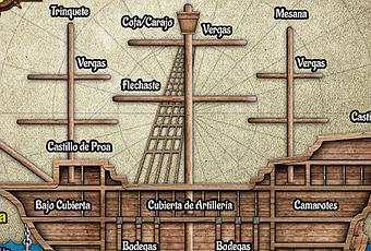 Antes de terminar os dejo esto. Es del juego de rol Hermanos de la Costa y es obra de Miguel A.Cable. Son las partes de un navío de vela, de los que se usaban habitualmente entre el siglo XVI al XIX, mas o menos. Solo falta sumarle Babor y Estribor que son, respectivamente, los lados izquierdo y derecho de una embarcación, mirando hacia proa (Que, como veis en la ilustración, es la parte delantera del barco). Y ya lo tenéis todo!