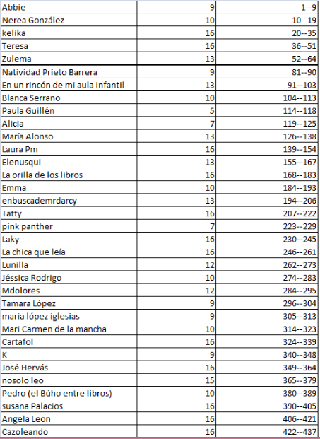 Os dejo la lista de participantes en el sorteo de "Tú me acostumbraste"