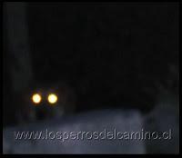 Ella, es una perra de raza golden retriever, temerosa, no deja de tocar a su pequeña que tirita y tirita con el frío de la noche. Intendo acercarme de manera suave para que no teman, la madre se asusta, está con miedo, pega un grito y arranca con su hija hacia los matorrales. Duele verlas asi, tan hermosas, y tan vulnerables en donde las dejaron. Les converso, trato de empezar a ganarme su confianza. Justo ahi, está el tacho para el agua, vacío y en el suelo, un alimento que desconozco. Decido alejarme. Voy al auto en busca de algo rico que les llame la atención. Me quedo de lejos conversándole, que no tengan miedo, que quiero estar con ellas. Habiéndome alejado deciden salir, una junto a la otra vuelven a observar que es lo que hago, siguen atentas. Mientras en la ciudad, grita goool de Chile ante Bolivia, en medio de la oscuridad hay un inocente sufriendo, soy testigo del sufrimiento de esa madre perra. La foto está tomada con zoom, casi a ciegas en la oscuridad.