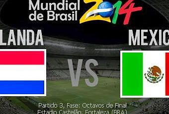 La arrolladora selección de Holanda se medirá ante una sólida selección de México, en un choque por los octavos de final del Mundial Brasil 2014 el cual se disputará en el Estadio Castelão, Fortaleza, con una capacidad para 60,342 espectadores; a las 13:00 (hora local) y sera dirigido por el Portugués Pedro Proenca; un duelo de pronósticos reservados.La selección Holandesa ocupo el primer lugar del Grupo B con 9 unidades, producto de sus victorias sobre España, Australia y Chile; con puntaje perfecto y siendo el equipo más goleador de la primera fase, con 10 tantos en tres encuentros. Mientras el Tri llegó a la instancia como segundo del Grupo A con siete unidades que le hicieron sumar dos victorias, ante Camerún y Croacia, y un empate contra Brasil; el Tri sobresalió al mostrar un impecable orden defensivo, razón por la cual es una de las selecciones menos batidas, al solo haber recibido 1 gol, al igual que Costa Rica.Ambas selecciones solo se han visto las caras una vez en un Mundial. Fue en Francia 1998, ya que ambos estaban instalados en el mismo grupo y en su cotejo igualaron 2-2.