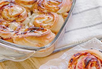 Cortamos el rollito en rodajas de más o menos el mismo tamaño, y las colocamos sobre una bandeja que habremos cubierto previamente con mantequilla o aceite de oliva.